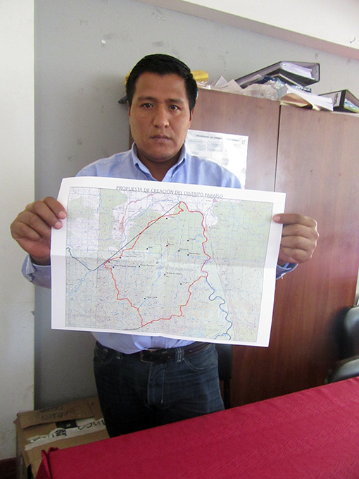 Por su lado, Ulises Espinoza Alvarado, vicepresidente del Comité de Distritalización de Paraíso, indicó que el trabajo conjunto con las autoridades y la presencia masiva de pobladores de los siete caseríos de la zona en conflicto fue el factor fundamental para convencer a los funcionarios de la Presidencia del Consejo de Ministros de la justicia de su propuesta. En esta labor de incidencia desarrollada por las autoridades comunales de Paraíso y la provincia de Marañón, resaltó la presencia permanente de la vicegobernadora regional Rosalía Storck Salazar y dos congresistas de nuestro departamento para hacer posible el avance del proyecto.