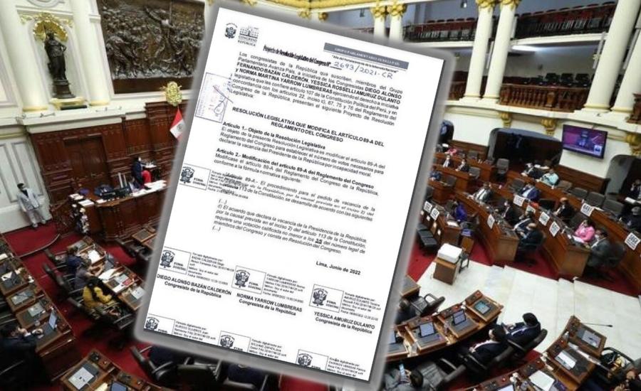 “El acuerdo que declara la vacancia de la presidencia de la República, por la causal prevista en el inciso 2 del artículo 113 de la Constitución, requiere una votación calificada no menor a los 3/5 del número legal de miembros del Congreso y consta en resolución del Congreso”, se lee en una parte de la propuesta.