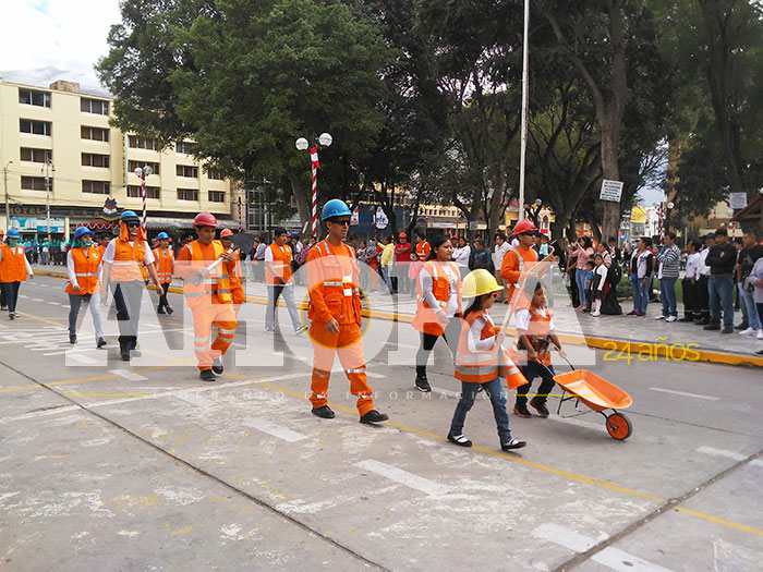 El gremio de construcción civil nunca participó del desfile por Fiestas Patrias, este año será la primera vez que participará de este evento. Ayer desfilaron en la Plaza Mayor portando sus herramientas de trabajo.