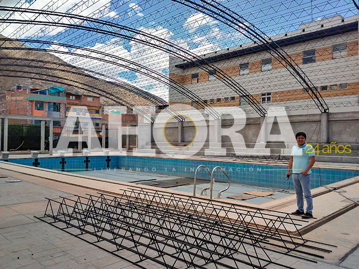 Actualmente se instala la cobertura de la piscina, el sistema de subestación eléctrica y asfaltado para la pista atlética, así como el sistema de bombeo de agua de la piscina, grupo electrógeno. El sistema eléctrico y la instalación de la pista atlética están en proceso de selección.
