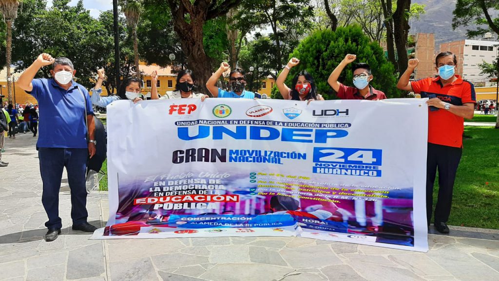 Representantes de varias organizaciones sindicales y gremiales estuvieron presente en la plaza de Armas de Huánuco para invitar a la población en general a una marcha regional en contra de la privatización de la educación, que pretende ejecutar supuestamente el Ejecutivo nacional con la resolución ministerial 326.