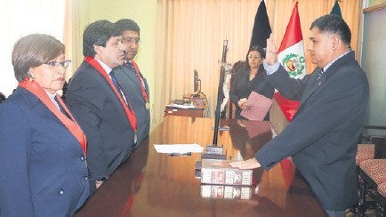 Ayer en horas de la mañana el presidente de la Corte Superior de Justicia de Huánuco César González Aguirre y los magistrados Eloy Cupe Calcina jefe de la Odecma y Vilma Flores León, juramentaron a tres nuevos jueces del distrito judicial de Huánuco.