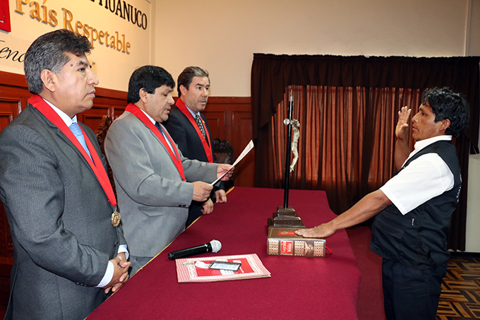 Luego de dos días de intensa capacitación, cuatro jueces de Paz juramentaron ante el presidente de la Corte Superior de Justicia de Huánuco César González Aguirre, jueces que accedieron al cargo a través del mecanismo de elección popular.