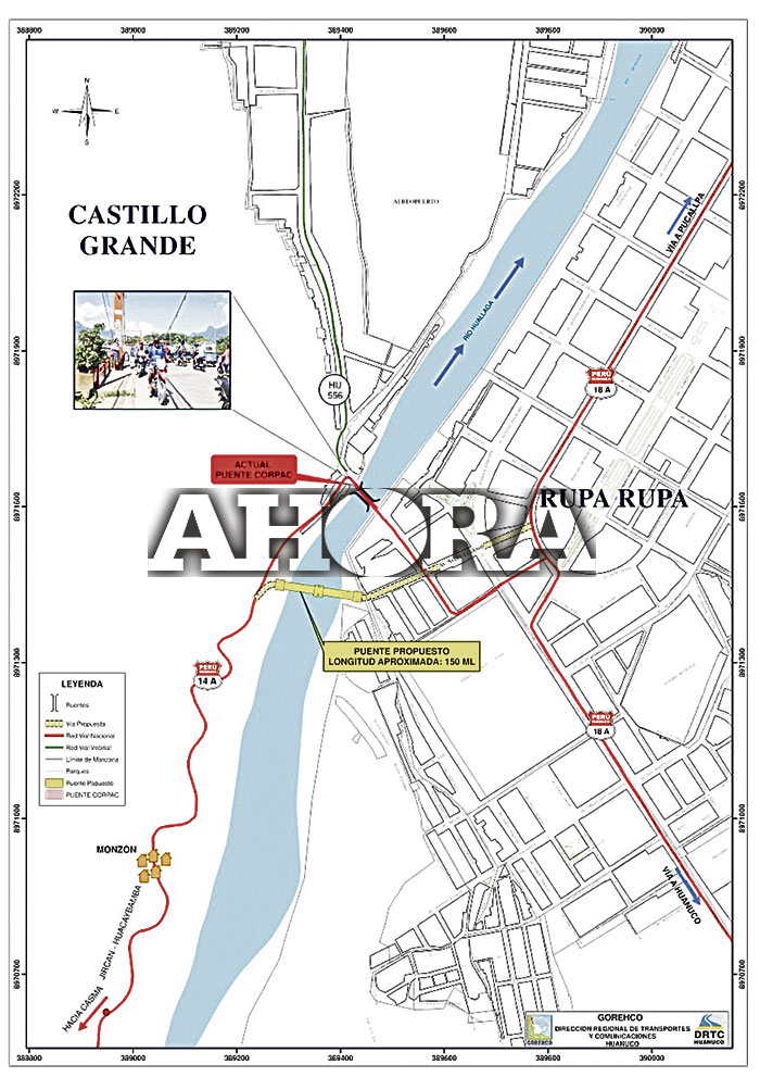 Afirmó que el puente tiene 50 años de construido y soporta una carga y flujo de tránsito muy superior para el que fue diseñado, permitiendo la interconexión con el distrito de Castillo Grande, al valle del Monzón, al centro poblado de Bella y la Cueva de las Lechuzas, además del Bolsón Cuchara y otros lugares donde se concentran más de 40 mil pobladores.