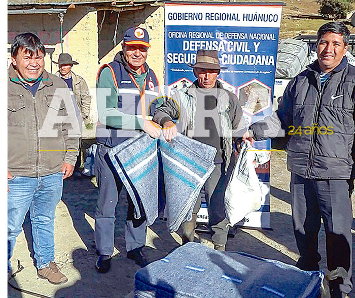 Once localidades fueron beneficiadas de la ayuda humanitaria entregada por la Oficina Regional de Defensa Nacional, Defensa Civil y Seguridad Ciudadana del Gobierno Regional de Huánuco, luego que 300 familias han sufrido los embates del descenso de las temperaturas.