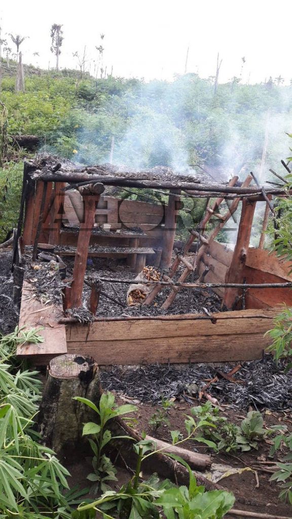 Nuevamente el caserío de Nueva Zelanda, ubicado en el distrito de Tournavista, provincia de Puerto Inca, fue atacado por delincuentes que quemaron todo a su paso.