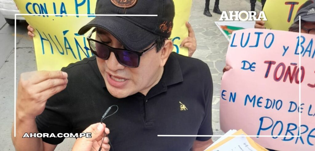 El dirigente Elmer Meza lideró una protesta en la Plaza de Armas de la ciudad de Huánuco, donde denunció también al alcalde de Huánuco por supuestamente realizar excesivos gastos durante su estadía en Lima.