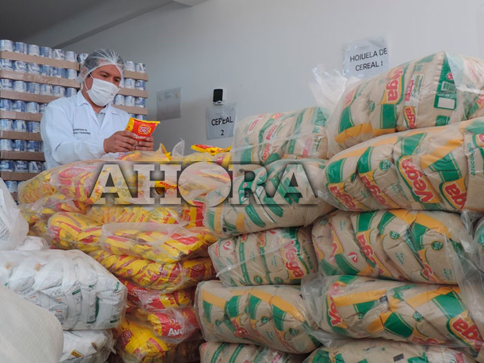 El juez de Paz, Eladio Aquino Loreña, hizo entrega de los productos para alimentación de los escolares, consistentes en 7 botellas de aceite, 24 latas de leche Gloria Bonle, 12 bolsas de fideos, 12 bolsas de haba partida, 10 bolsas de arroz de un 1 kilo, 6 bolsas de lentejas, 6 bolsas de arvejas, entre otros que incautaron a la docente.