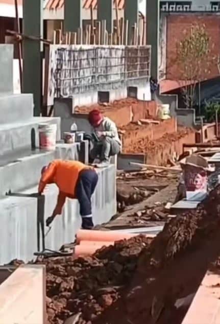 Según denuncias difundidas a través de redes sociales, imágenes y videos registran el trabajo de apenas dos obreros aplicando cemento sobre una estructura aparentemente precaria, sin presencia visible de supervisores ni indicios de uso de materiales técnicos adecuados para una estructura permanente.