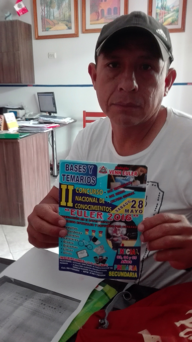 Fabrizzio es un niño de 11 años que ya tiene acumulados decenas de diplomas y más de treinta medallas obtenidas en concursos locales, regionales y nacionales. Su padre Carlos Vílchez Miranda, quien siempre suele alentarlo para que participe, ha hecho público un singular caso. Fabrizzio participó por iniciativa propia del II Concurso de Conocimientos, organizado por la I.E.P. Venn Euler de Pillco Marca, el sábado 28.Sin embargo, fue descalificado pese a obtener la nota más alta al contestar las 20 preguntas correctamente y obtener 200 puntos, según el reporte del concurso.