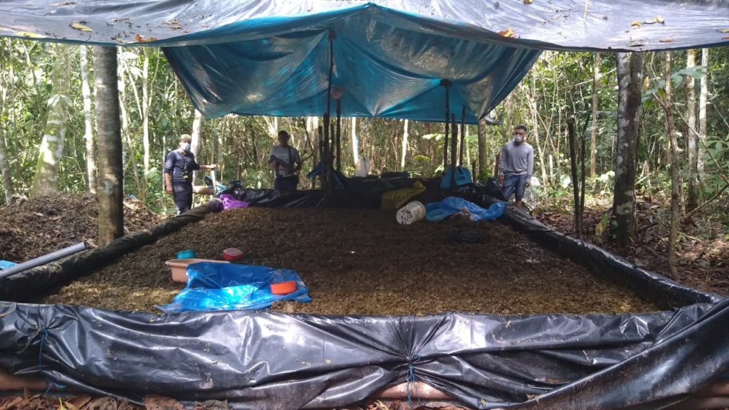 En una poza hallaron 120 arrobas de coca en proceso de maceración, y otra poza o “caldero”. Asimismo, encontraron cinco mil kilos de detritus (hoja de coca trabajada), así como bidones de gasolina y otros elementos químicos. Tras extraer muestras para investigación, las pozas fueron incineradas.