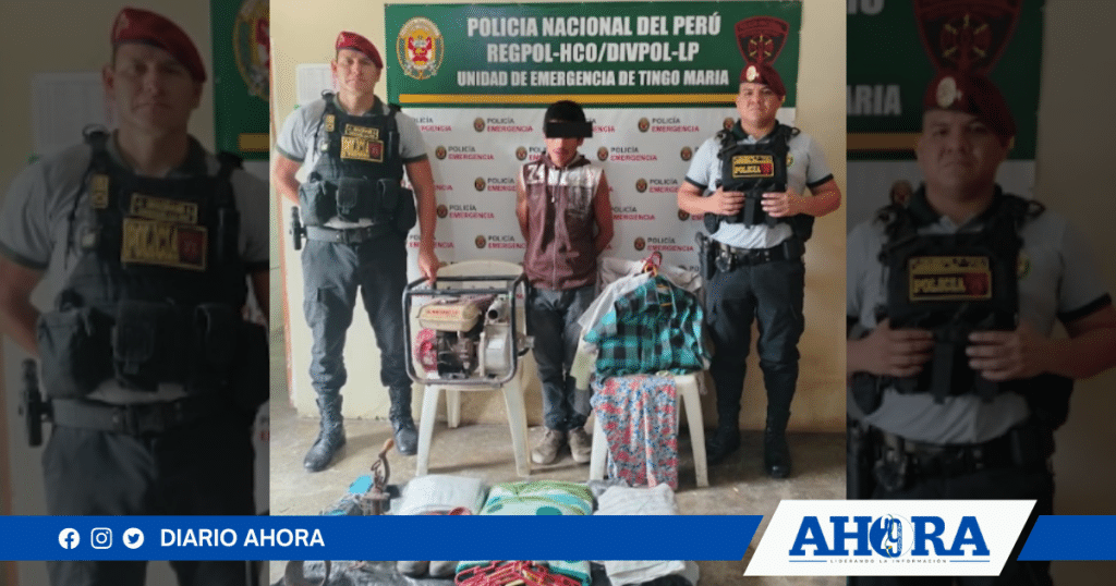 El incidente se produjo alrededor de las 10:30 horas en la Av. 7 de Mayo S/N en la localidad de Castillo Grande, cuando se denunció la desaparición de varias especies. Durante la intervención policial, se logró recuperar un equipo mediano de color rojo, marca KAWAMOTO WP20X, que corresponde a una bomba de agua. Además, fue hallada una máquina de moler color plomo, marca CORONA. Asimismo, a unos cinco metros del lugar del suceso, los agentes encontraron un saco de polietileno de color negro, en cuyo interior se hallaban una manguera de plástico azul, varias colchas y prendas de vestir.