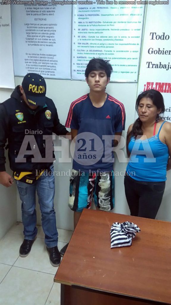 Policías del grupo Terna detuvieron a Bella Pamela Baldeón Villanueva (41) y a su hijo Ray Erick Cuadros Baldeón (19) tras sorprenderlos en posesión de 165 gramos y tres miligramos de marihuana en el interior del vehículo Toyota Yaris gris oscuro metálico con placa de rodaje S7M-213.