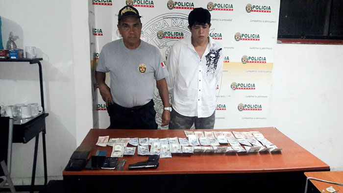 En Cayumba fue detenido Alindor Novoa Zoroe (47), a quien en su poder hallaron un arma de fuego, dólares y miles de soles de dinero en efectivo. La intervención ocurrió ayer en horas de la madrugada en el kilómetro 501 de la carretera Fernando Belaúnde Terry.