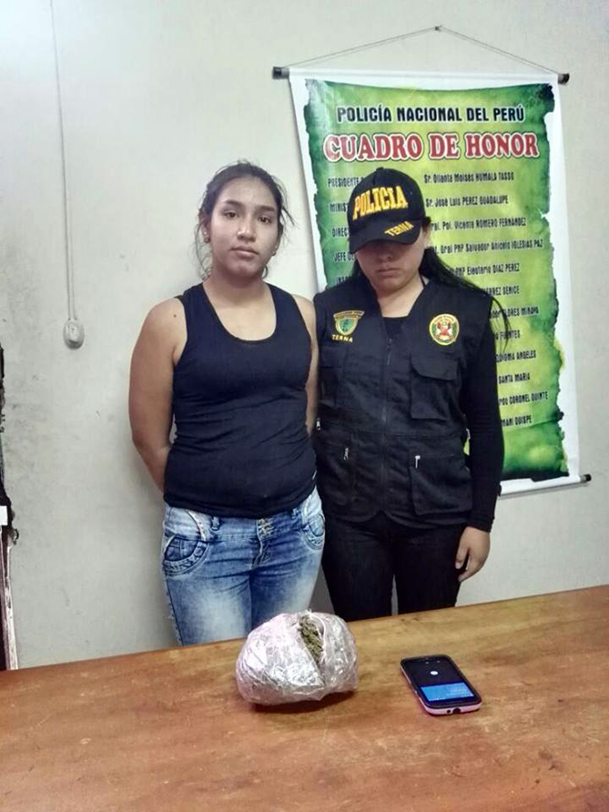La estudiante de Ingeniería Civil, de iniciales M.D.P. (21), fue intervenida por policías del grupo Terna con gran cantidad de marihuana. La intervención se realizó el martes a las 6:00 p. m. en la cuadra nueve del jirón Constitución.