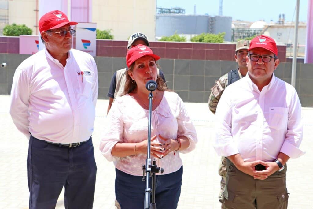 Se aferra al poder. Dina Boluarte estuvo en el departamento de Piura para la inauguración del muelle de espigón en Paita y la Modernización de la Refinería en Talara. Durante su intervención a la prensa dejó en claro que no renunciará a la presidencia.