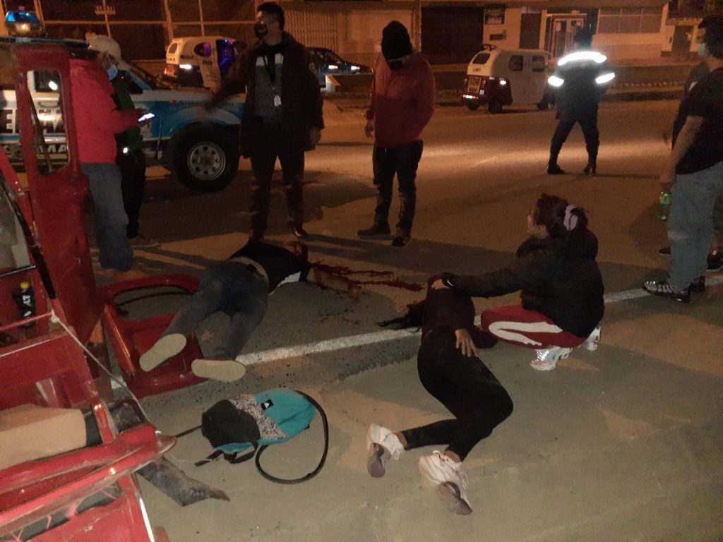 Hasta el lugar se desplazaron agentes del quienes encontraron a los dos heridos tendidos en la pista en medio de un charco de sangre. De inmediato llamaron a los paramédicos del SAMU, los cuales le dieron los primeros auxilios y trasladaron al hospital EsSalud.