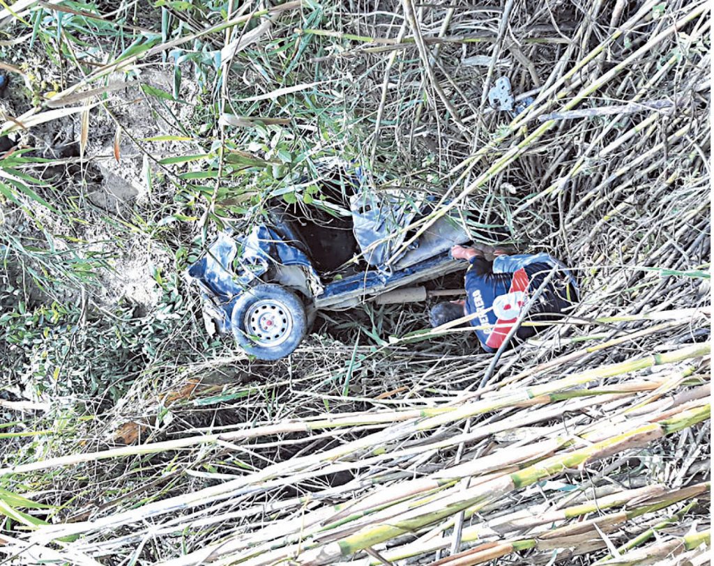 Entre las pertenencias de Oscar León Nepo hallaron un carnet como promotor prosalud, certificado de estudios, y su DNI. En tanto, el vehículo terminó en el precipicio completamente achatado.