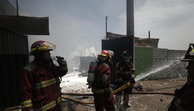 Dos trabajadores quedaron heridos tras un incendio que se registró en el sótano de una edificio en construcción del Instituto Nacional de Enfermedades Neoplásicas (INEN), ubicado en Surquillo .