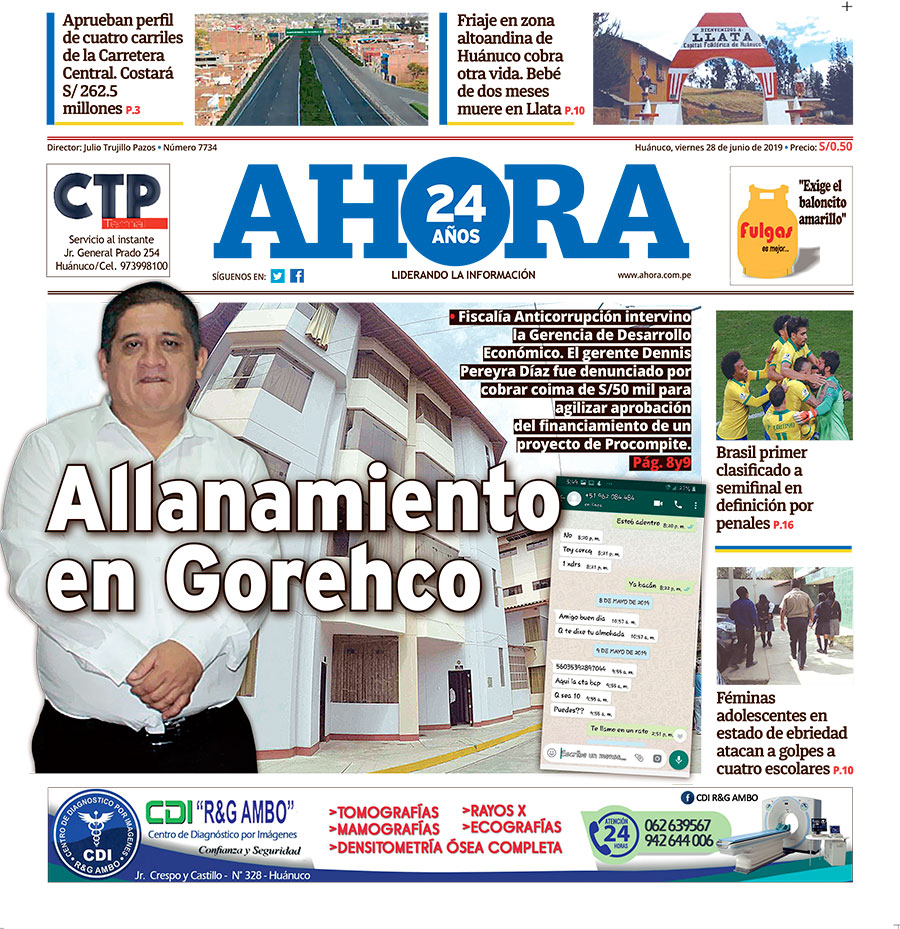 Edición digital Diario Ahora 28-06-1928 de junio de 2019 MIRA TAMBIÉN: Corrupción en el gobierno regional Huánuco [VIDEO]