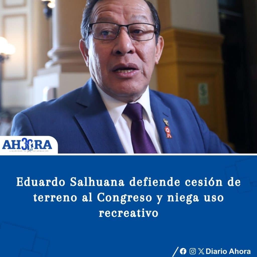 El presidente del Congreso, Eduardo Salhuana, se pronunció sobre la reciente cesión de un terreno al Parlamento por parte de la Superintendencia Nacional de Bienes Estatales (SBN), asegurando que su uso será estrictamente institucional y descartando cualquier plan para convertirlo en un espacio recreativo.