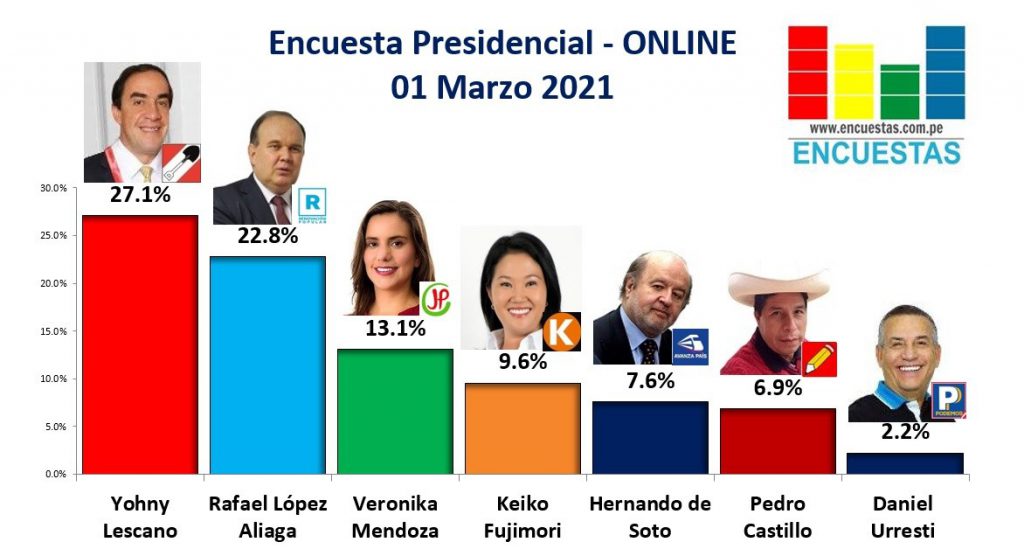 Así las cosas, el CELAG (Centro Estratégico Latinoamericano de Geopolítica) – no afín a los intereses del orden establecido peruano-acaba de presentar una encuesta de opinión a nivel nacional relacionada a los comicios de abril. En ella, sólo tres candidaturas se disputan efectivamente el pase al balotaje de la segunda vuelta: Yohny Lescano(15,6 %), George Forsyth(13,1%) y Verónika Mendoza(11,2%), siendo los únicos candidatos que superan el 10% de las preferencias.