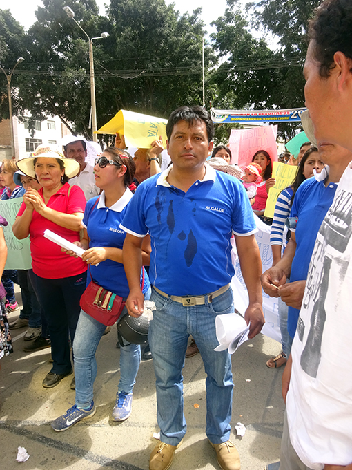 Un grupo de 30 personas, que serían trabajadores de parques y jardines de la Municipalidad de Amarilis, apostados a un costado del Parque de la Salud, esperaron la movilización de los pobladores de Llicua. Cuando ambos bandos se encontraron se generó una pequeña trifulca resultando agredido el alcalde Marco Gutiérrez a quien le lanzaron huevos. Los protestantes se quejaron que los proyectiles incluso fueron lanzados desde el interior del local municipal.