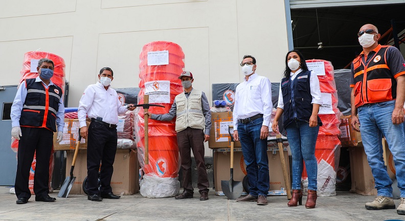 La ayuda humanitaria, gestionada por el gobernador Juan Alvarado Cornelio, consiste en cuatro toneladas de alimentos (arroz, azúcar, frijol, lentejas y conservas de atún), 804 frazadas, 504 planchas de calaminas, 253 baldes, 253 tachos, 1608 platos, 804 vasos y 804 cucharas. Asimismo, 20 barretas, 20 carretillas, 40 palas, 40 picos y 200 pares de botas.