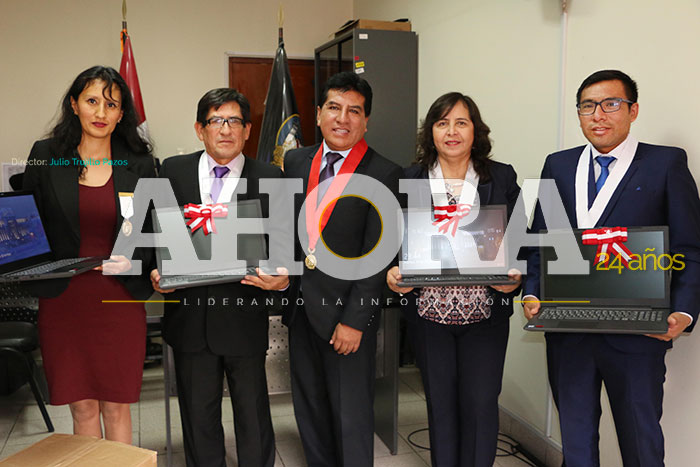 Jueces de la sede judicial de Ambo recibieron de manos del presidente de la Corte Superior de Justicia de Huánuco, Samuel Santos Espinoza, 14 computadoras, 2 escáneres, 4 laptop y 3 impresoras. Asimismo, se ha mejorado la Red Wan con 15 megas al sistema con velocidad de fibra óptica, destinados para fortalecer la labor judicial
