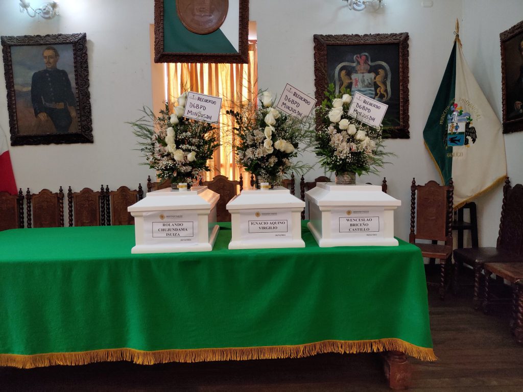 Después de un proceso científico de ubicación, exhumación e identificación de personas realizado por los peritos del Equipo Forense Especializado de la Unidad Médico Legal de Huánuco y los integrantes de la Dirección General de Búsqueda de Personas Desaparecidas (DGBPD), se efectuaron las diligencias de armado y entrega de los restos óseos humanos y elementos asociados de diez víctimas que fueron asesinadas por terroristas entre los años 1980 al 2000.