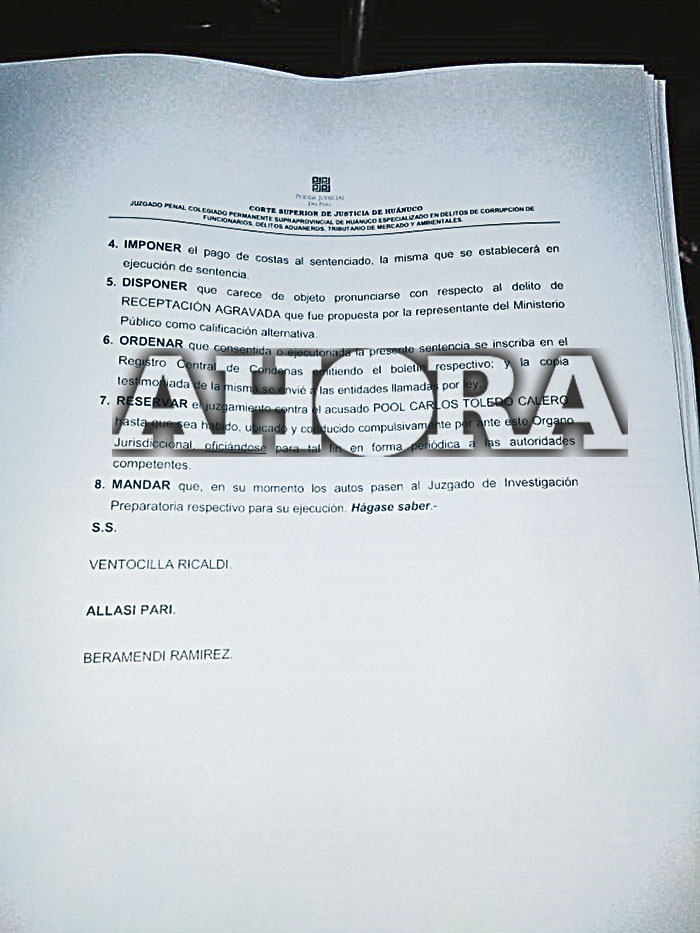 El tercer inculpado delatado por sus propios cómplices es Pool Carlos Toledo Calero, quien se encuentra en condición de prófugo y que según informes generales se encontraría en la zona sur del país.