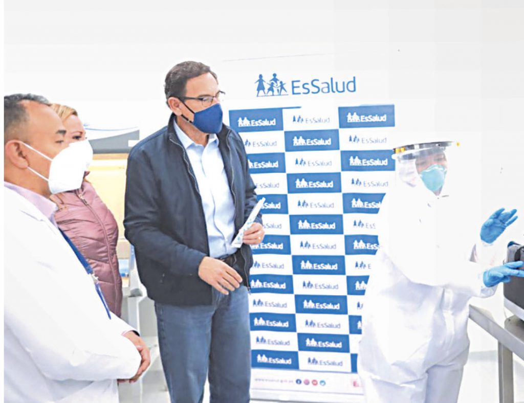Con la presencia de Martín Vizcarra, presidente de la República, EsSalud presentó el laboratorio de biología molecular, especializado y exclusivo para la detección del virus del Sars-CoV-2, que tendrá una capacidad para realizar hasta 2000 pruebas por día.