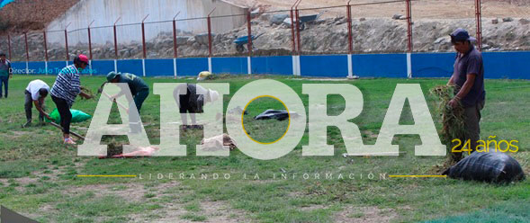 Desde el jueves, cuadrillas de trabajadores vienen laborando en la eliminación de objetos contundentes (piedras y otros), traslado de los módulos educativos a otro lugar, recalzado del grass del campo de juego, desatoro de las tuberías de agua y desagüe de los servicios higiénicos y otros trabajos que realizarán hasta la fecha en que se programe el primer partido de la etapa nacional del Racing Club.