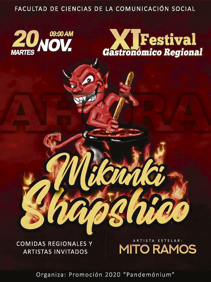 Los estudiantes del 3° año de la E.A.P. Ciencias de la Comunicación Social de la Universidad Hermilio Valdizan organizan el XI Festival Gastronómico Regional Mikunqui Shapshico, que se llevará a cabo este martes 20 en homenaje al natalicio del padre de la psiquiatría peruana Hermilio Valdizán Medrano.