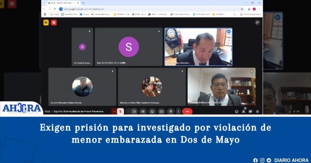 La Segunda Fiscalía Provincial Penal Corporativa de Dos de Mayo ha solicitado ante el Poder Judicial la imposición de nueve meses de prisión preventiva contra Nilo Raúl Huerta Acosta, de 30 años, a quien se le atribuye la presunta comisión del delito de violación sexual de menor de edad, en agravio de una niña de 12 años, hoy gestando producto de los actos denunciados.
