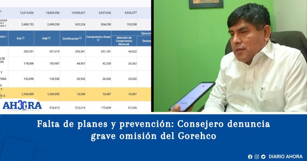 La crítica no se limita a los documentos inexistentes. Según el consejero, también hay una inaceptable falta de ejecución presupuestal. En ese sentido, citó declaraciones del jefe de INDECI Huánuco, quien reveló que el Gobierno Regional dispone de S/ 1,126,000 para la compra de kits sanitarios destinados a emergencias, pero no ha ejecutado esos recursos. “Todo lo que se ha gastado hasta ahora ha sido a través del Gobierno Nacional, mientras el Gobierno Regional no ha invertido nada. Ni siquiera los kits sanitarios. ¿Qué están esperando?”, cuestionó.