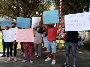 Familiares de Elmer Naupay realizaron una manifestación pacífica porque su pariente ha sido condenado a cadena perpetua injustamente.