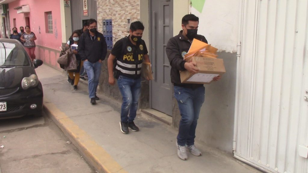 Los fiscales de la Fiscalía Especializada en Corrupción de Funcionarios de Huánuco, conjuntamente con efectivos pertenecientes a la Dirección Contra la Corrupción (DIRCOCOR) y de la Macro Región Policial Huánuco, simultáneamente llegaron a los inmuebles indicados en la resolución judicial para recabar información y pruebas fehacientes sobre la adquisición irregular de laptops en el año 2019.