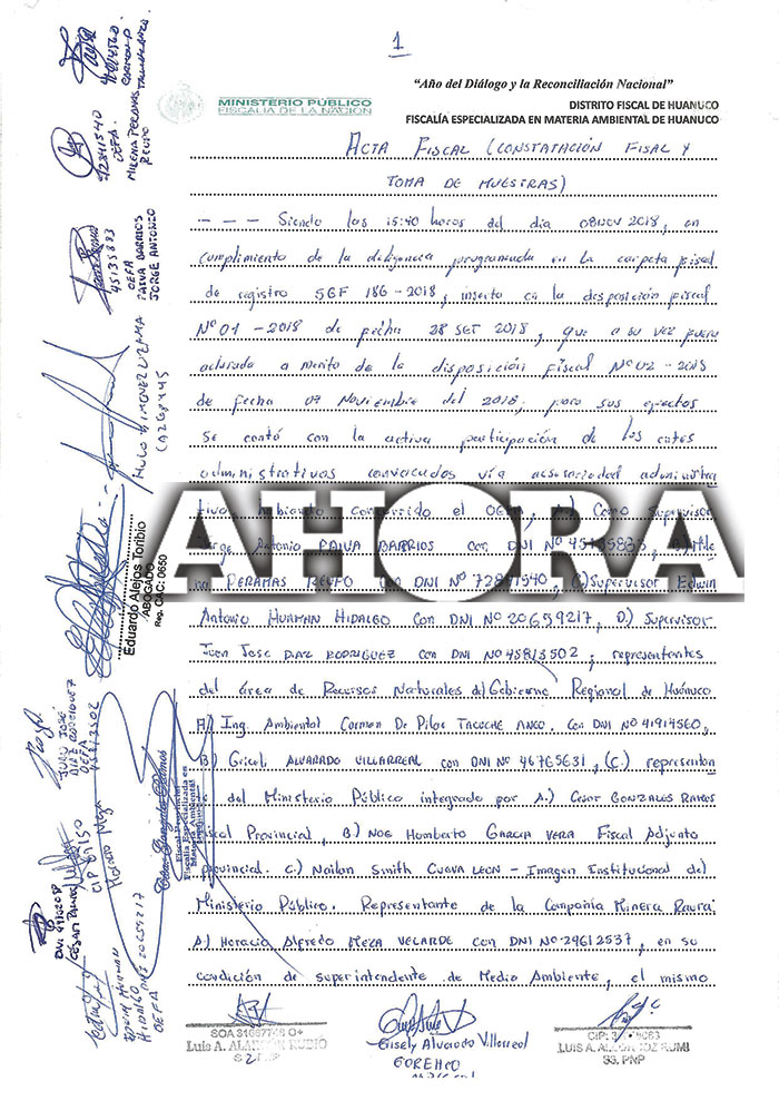 La información la aportó César Gonzales Ramos, titular de la fiscalía especializada, quien aclaró que en los dos días el avance del trabajo realizado ha permitido cubrir solo pocas lagunas y áreas, razón por la cual en los siguientes días del mes de noviembre continuarán con la toma de muestras en otras lagunas que puedan ser significativas de la situación que ocurre tanto en la cabecera de cuenca que conduce hacia la zona de Oyón como a la zona de la laguna de Lauricocha.