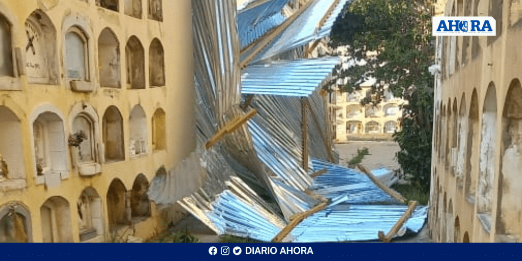 Los techos de calamina de dos pabellones del histórico cementerio Augusto Figueroa Villamil fueron arrancados por vientos huracanados, dejando las estructuras gravemente expuestas a las inclemencias del tiempo. El incidente ocurrió este domingo, cuando una familia que visitaba el cementerio, compuesta por niños y ancianos, estuvo a punto de ser aplastada por los escombros, logrando salvarse por muy poco.