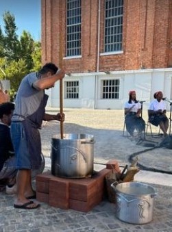 En la olla y la escultura – horno bautizado como Alcindo, Gabriel Chaile prepara una comida que se convida a los que acompañan la performance, como en un acto litúrgico, la presencia espiritual de Alcindo Monteiro se convierte en motivo de memoria, desagravio, curación comunal, el artista dirige el rito. “Pero no cambia mi amor por más lejos que me encuentre. Ni el recuerdo ni el dolor de mi pueblo y de mi gente” canta Mercedes Sosa. La olla y escultura – horno, se tornan en objetos vivos donde todos interactúan, al final del convite quedan dos objetos artísticos llenos de vida.