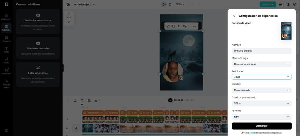 Ahora puedes editar subtítulos manualmente, ajustar la alineación del texto o modificar colores y tamaño. Prueba filtros, música de fondo o elimina fondos innecesarios mientras ajustas los controles de velocidad para que coincidan con el flujo deseado.