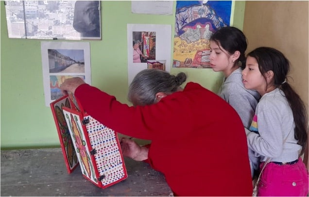 A las 5 de la mañana está en pie, reza su santo rosario y escucha las noticias, se alista a desayunar, labora hasta que las titilaciones de las estrellas se posicionan en el ventanal de su sala. Cada día como dice ella: es amor y perseverancia. Entre sus muchas virtudes, realiza talleres con los niños y adolescentes, con ellos refrenda su vitalidad como una joven más, siendo disciplinada y firme con la enseñanza de la técnica; dócil y precisa con la historia a contarse. Rigor heredado por Jesús Urbano Rojas (1925-2014) de don Joaquín López Antay (1897-1981) y ella, de Jesús Urbano. Mira su trabajo y recuerda con cariño a don Pablo Macera (1929-2020), a Rosaura Andazabal Cayllahua (1961-2021), exhala.
