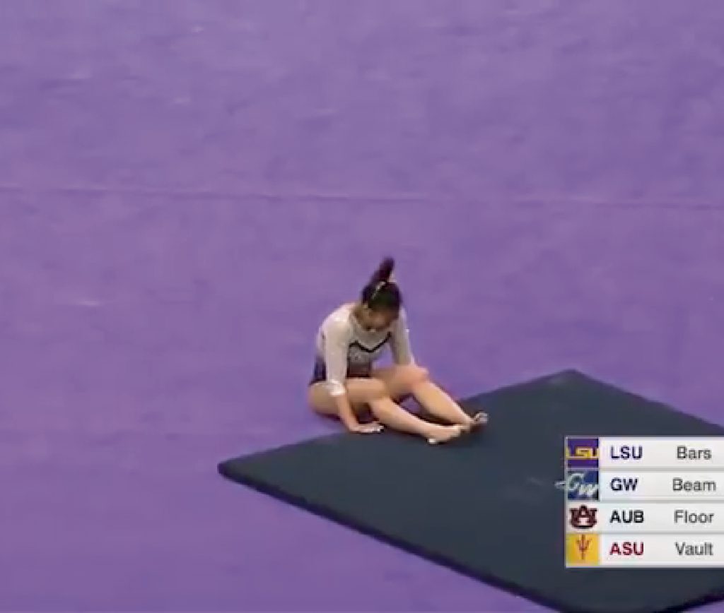Durante su primer turno en la competencia la gimnasta se fracturó las dos piernas tras una mala caída. El desafortunado acontecimiento quedó registrado por las cámaras que cubrían el evento deportivo y luego fueron compartidas a través de YouTube.