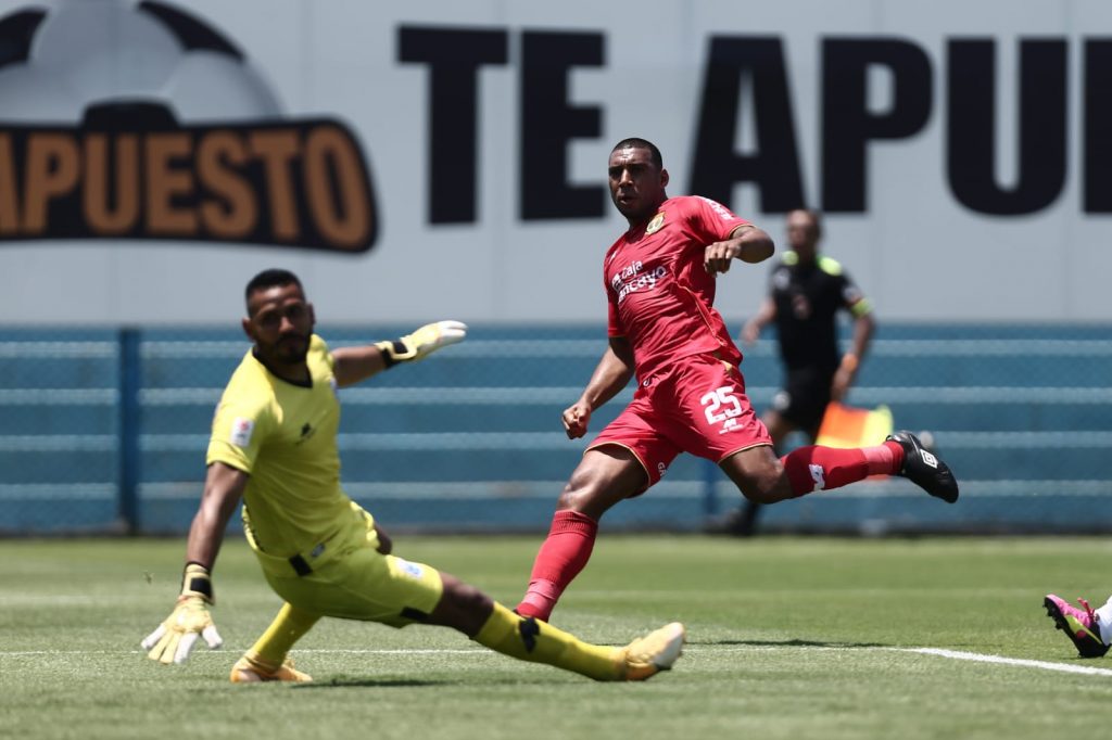 Apenas a los siete minutos, el equipo de Wilmar Valencia abrió el marcador gracias a Marcos Lliuya, quien ejecutó un tiro libre que sorprendió a la defensa de Deportivo Binacional para que el balón ingresara en el fondo del arco del portero Raúl Fernández.
