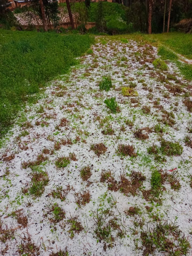 Una intensa granizada y lluvias torrenciales registradas durante la tarde afectaron considerablemente terrenos agrícolas y productos esenciales en diversas localidades rurales. Los primeros reportes indican que las zonas de Nunash, Pachas, Shunqui y el distrito de Yanas son las más afectadas.