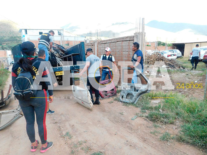 También había otro vehículo de placa de rodaje F1X-338, solicitado por el Juzgado Civil de Lima, además de decenas de puertas, parachoques, asientos, tapabarros, entre otras autopartes.