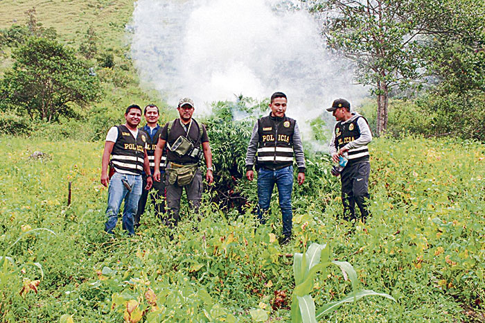 Los policías arrancaron la hierba alucinógena y luego procedieron a incinerarlas en el mismo lugar. La intervención fue realizada bajo la supervisión de la fiscal Antidrogas Vertila Álvarez Huamán, evitando con ello la comercialización de 1266 kilos de marihuana valorizados en S/379 800 soles.