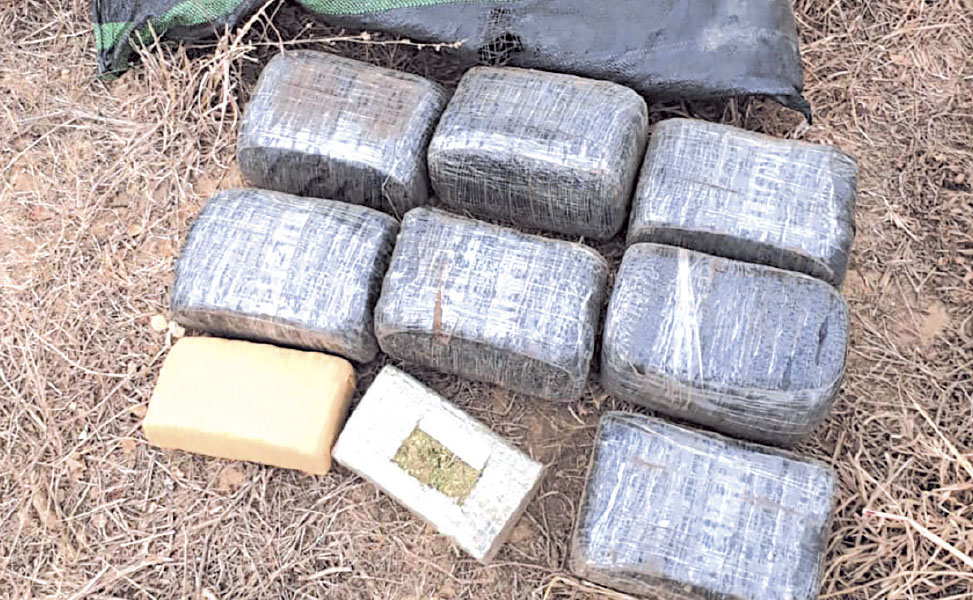Los sujetos al ver a los policías emprendieron su fuga hacia los matorrales de sembríos de maíz y al seguir sus rastros hallaron un costal de polietileno de color negro con nueve paquetes de precintados en forma de ladrillos.