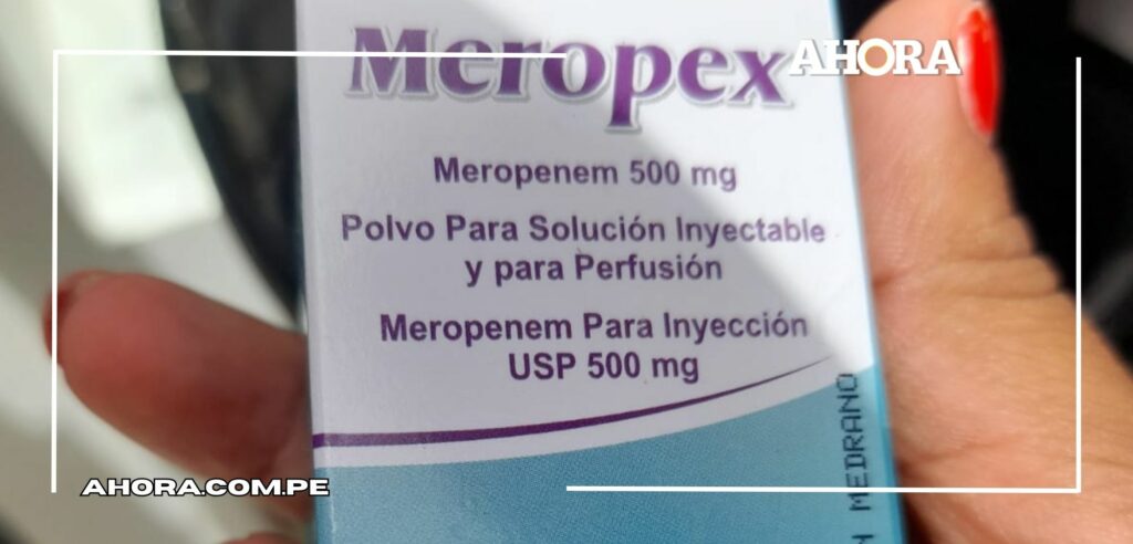 A través de una transmisión en redes sociales, el hombre de prensa mostró una caja del antibiótico Meropex (500 ml), cuyo lote habría sido recibido en septiembre del 2023, el cual aparentemente fue adquirido por pedido del área de farmacia del hospital Hermilio Valdizán.
